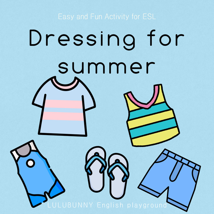 - 포스터를 활용해 여름 옷 이름을 아이와 함께 읽어보고 색깔이나 용도에 대해 이야기해보세요.